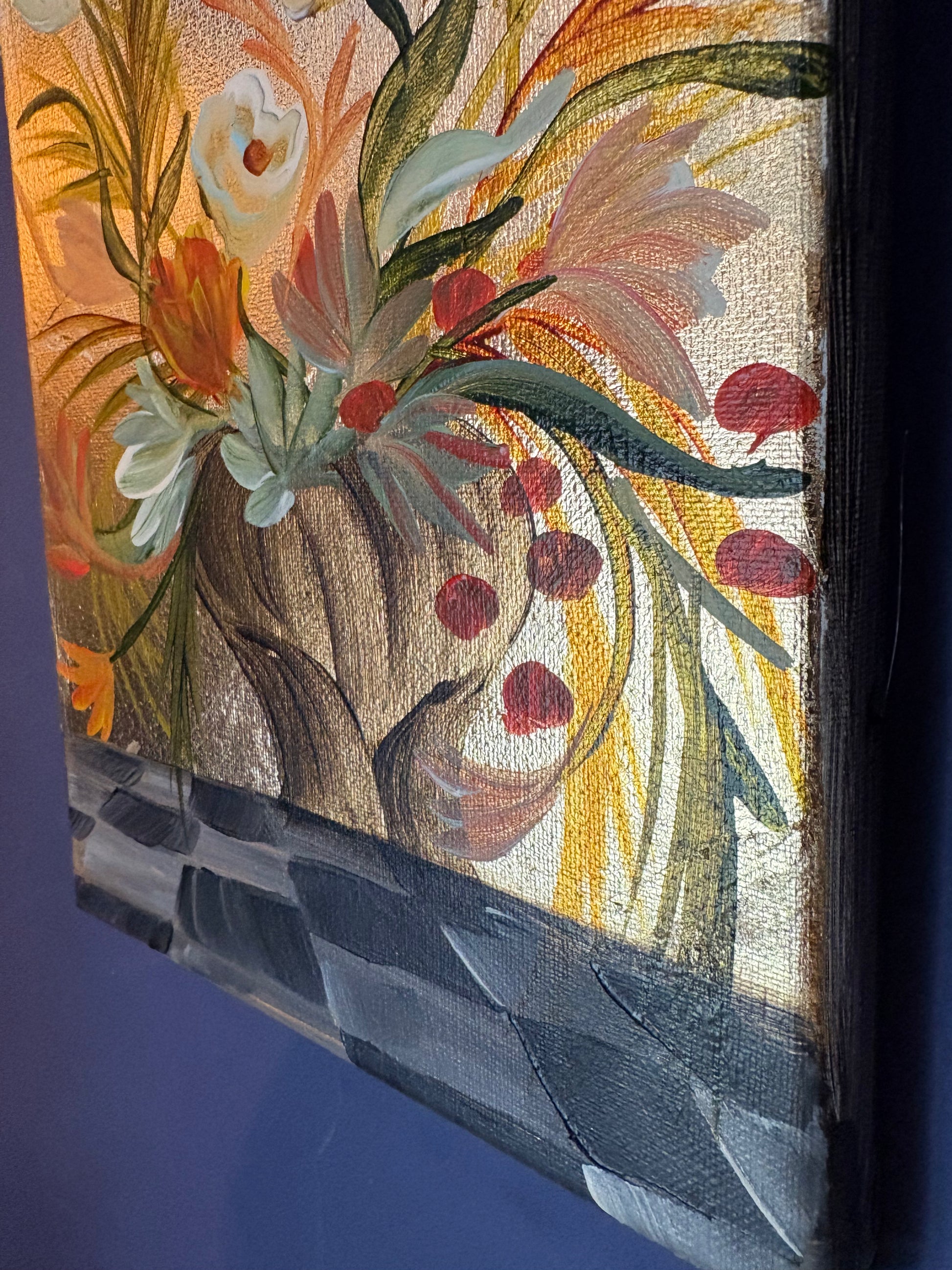 8x10 original painting. Acrylic on gold leafed canvas.