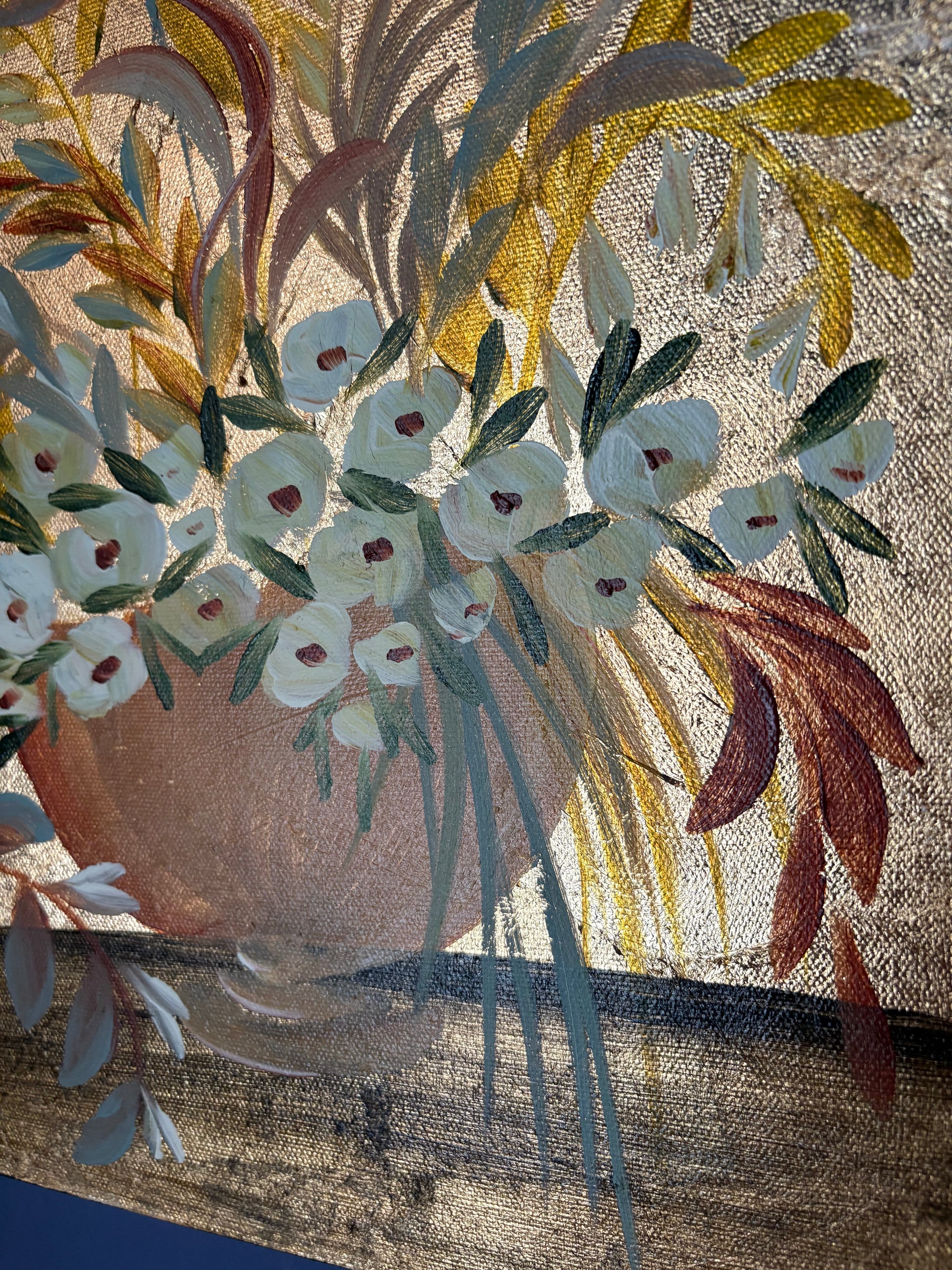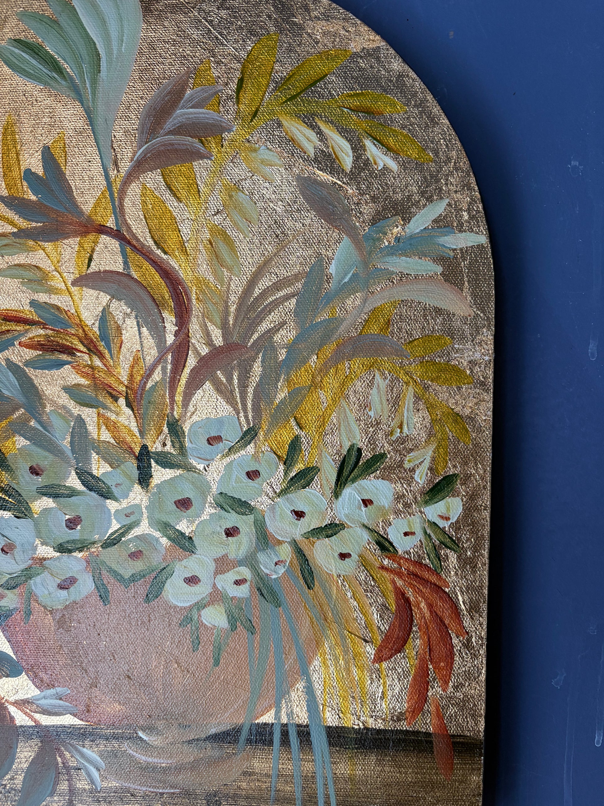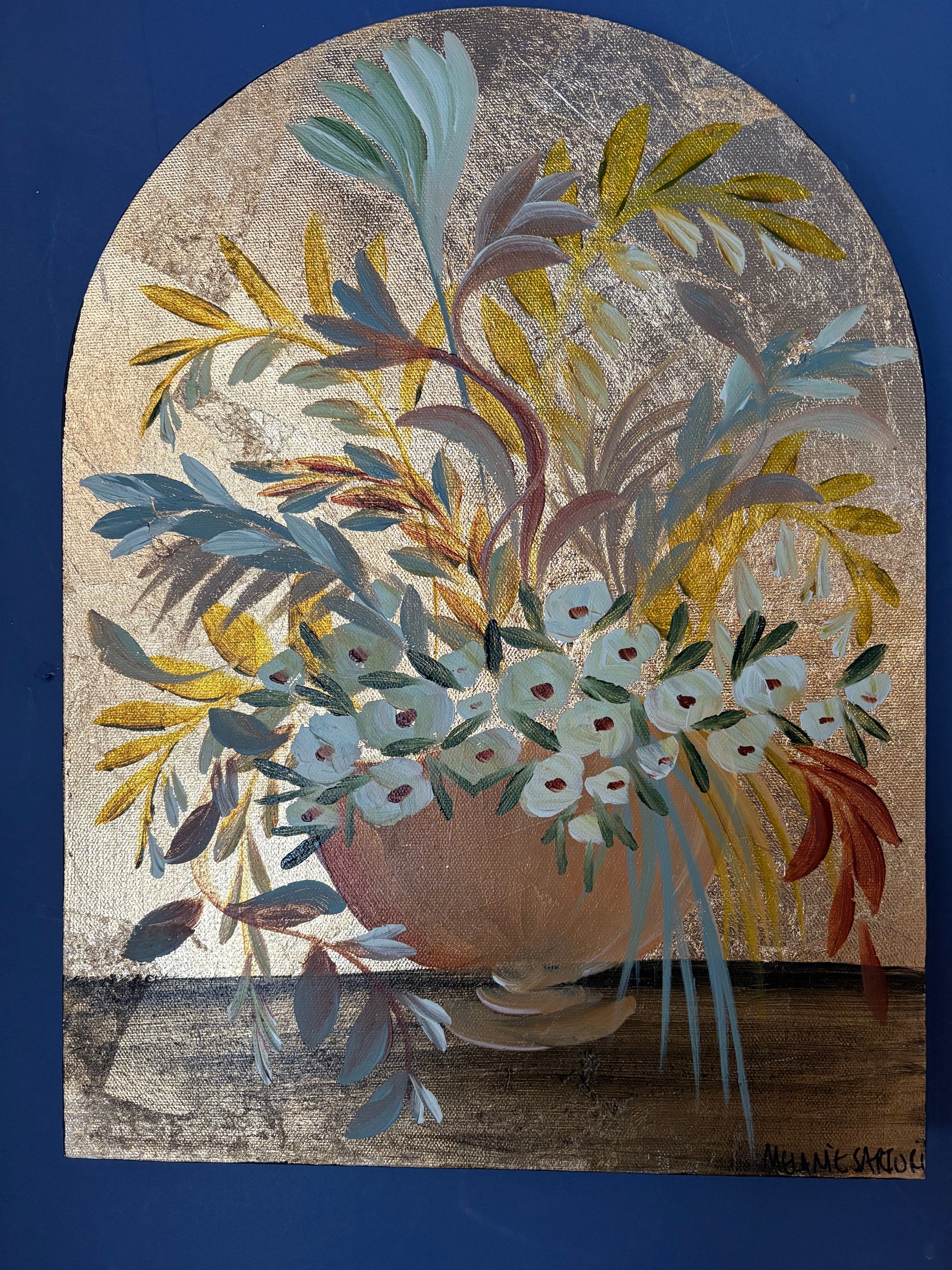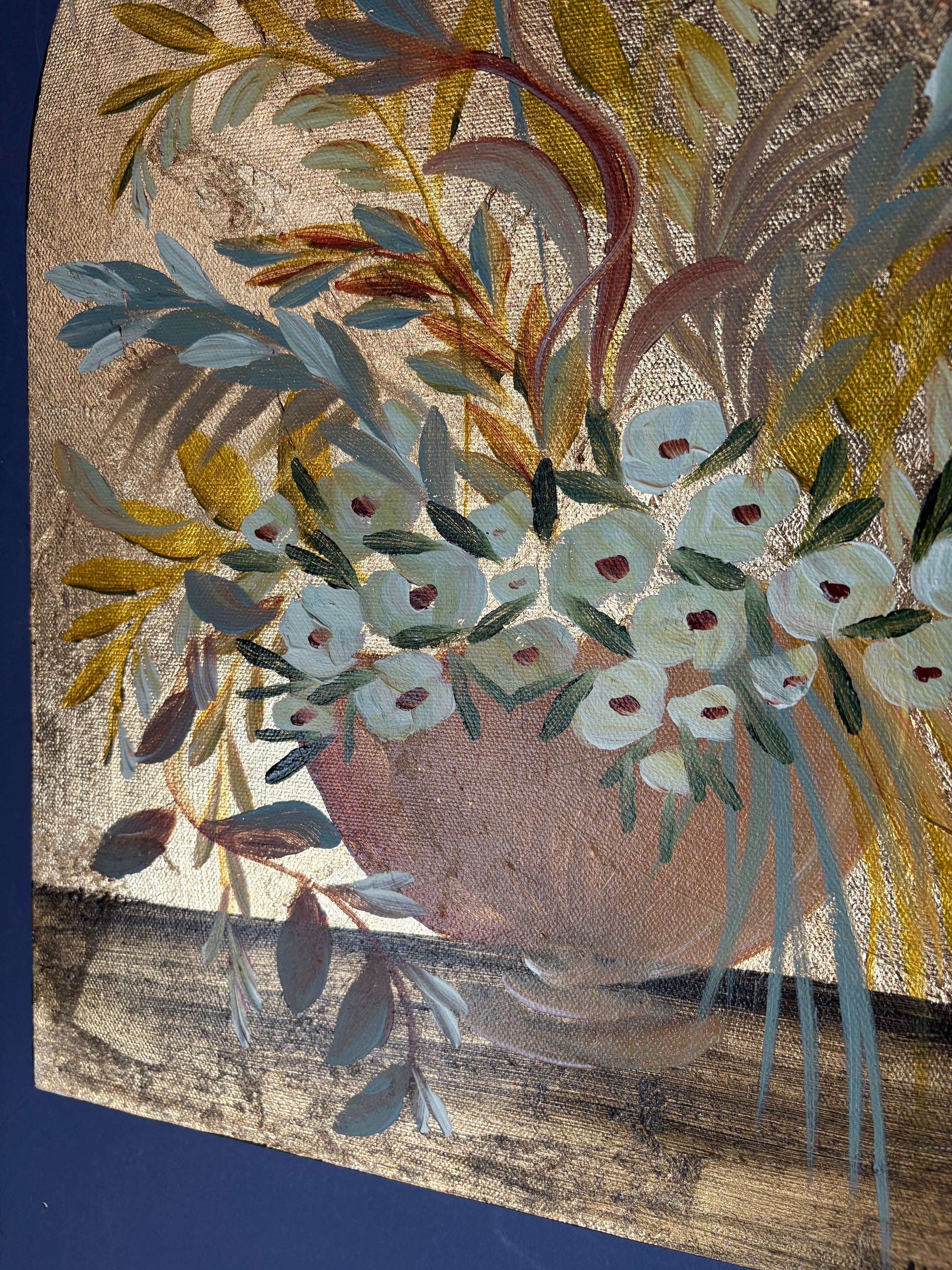 11x14 inch original painting on arch canvas - acrylic, transparent mediums, on gold metal leaf.
