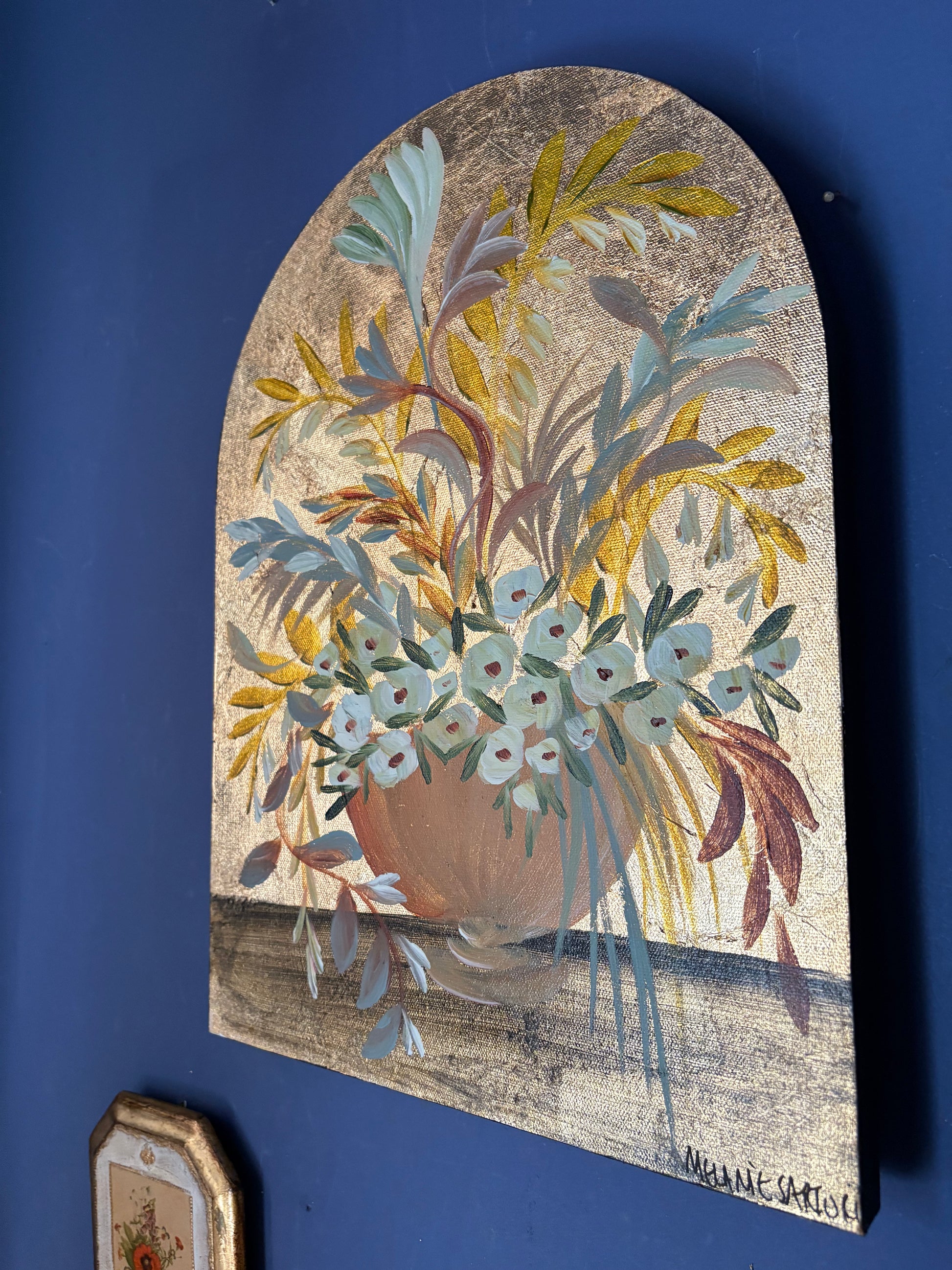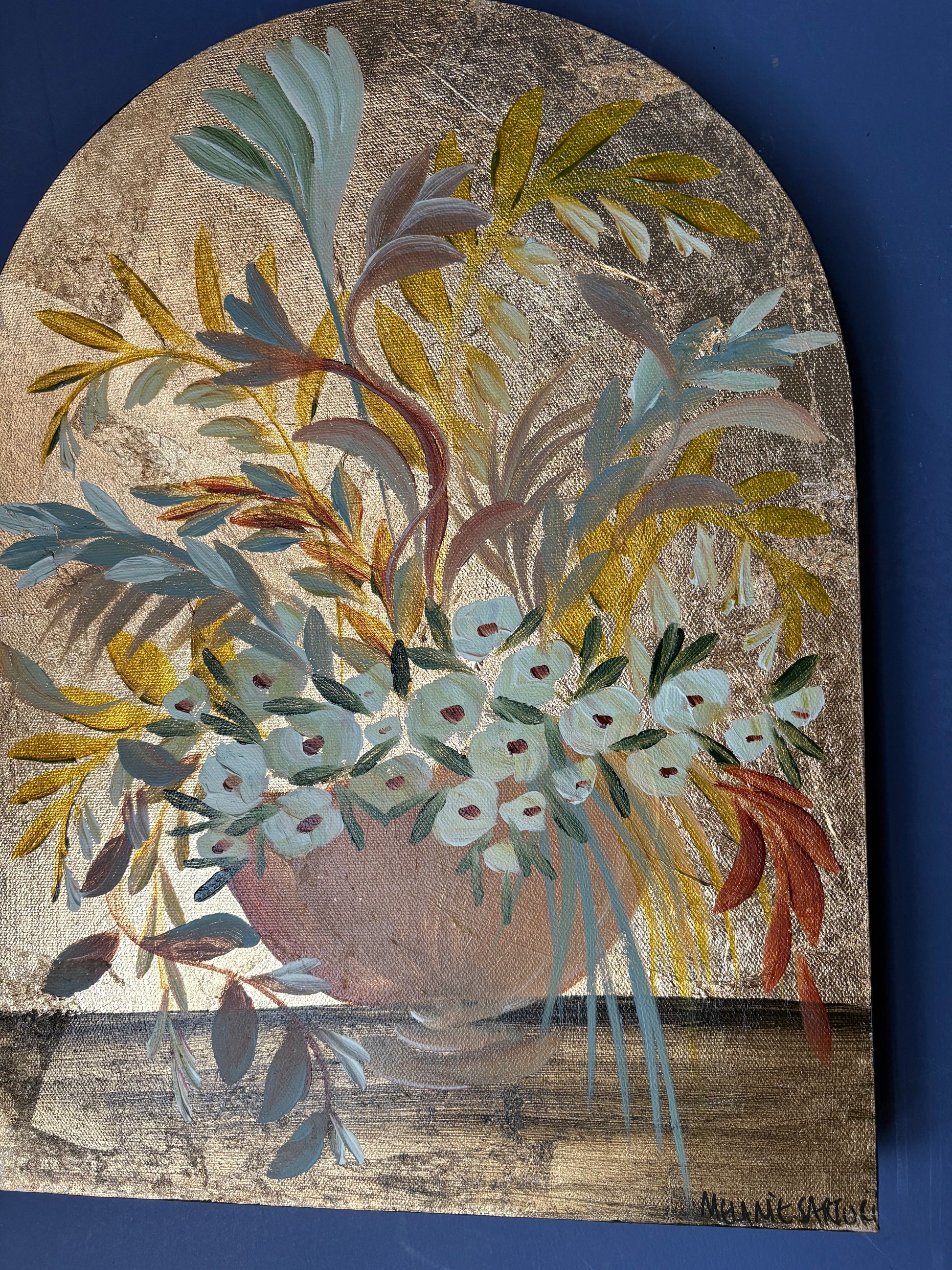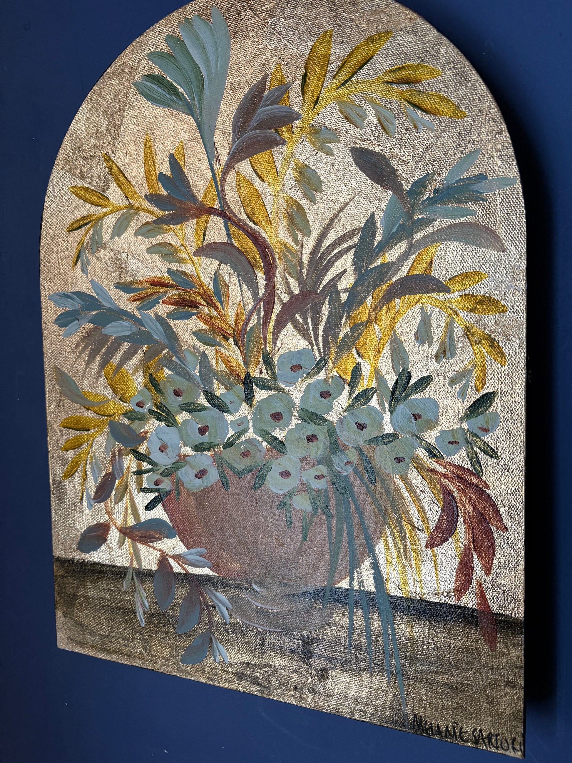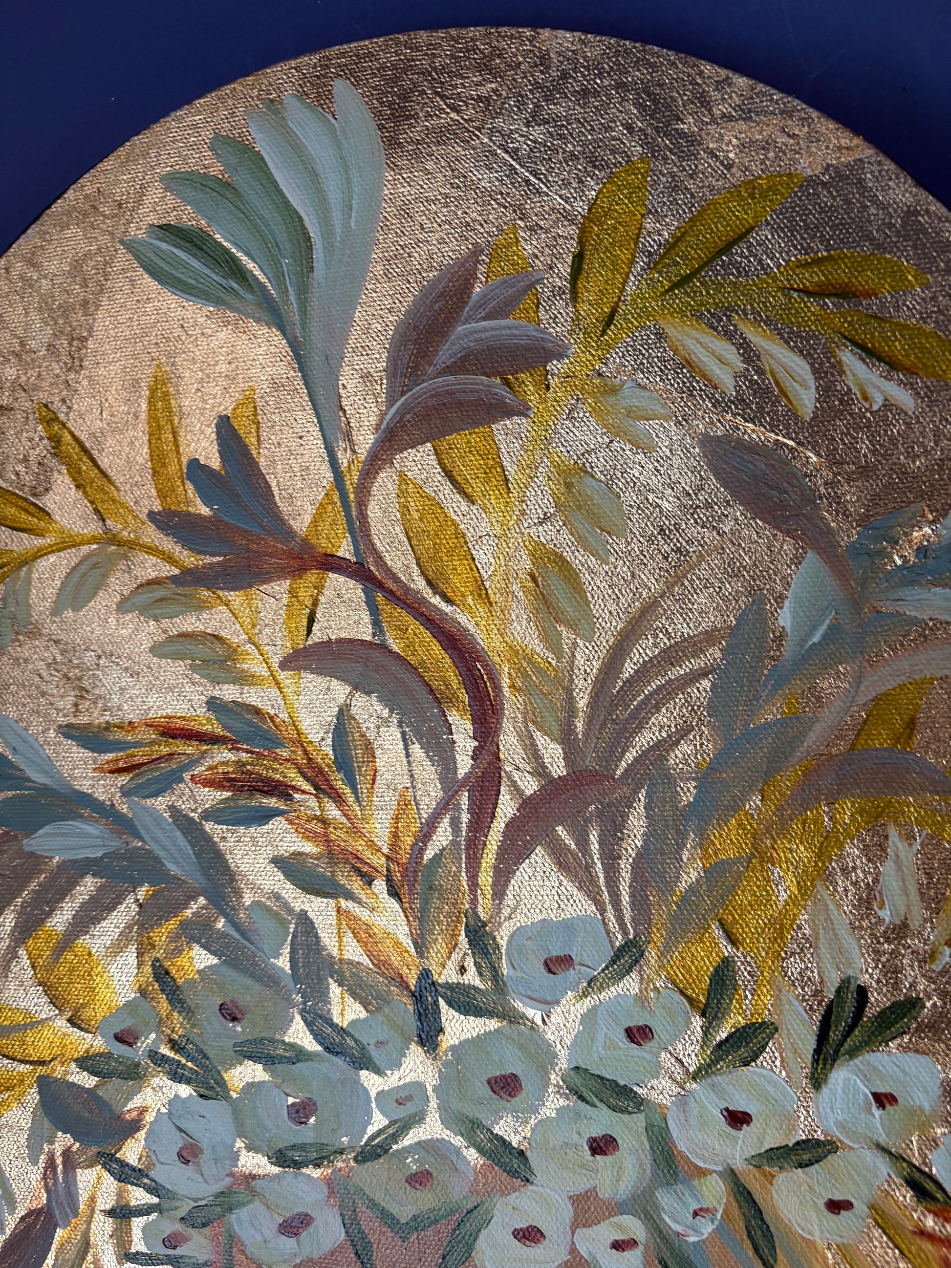 11x14 inch original painting on arch canvas - acrylic, transparent mediums, on gold metal leaf.