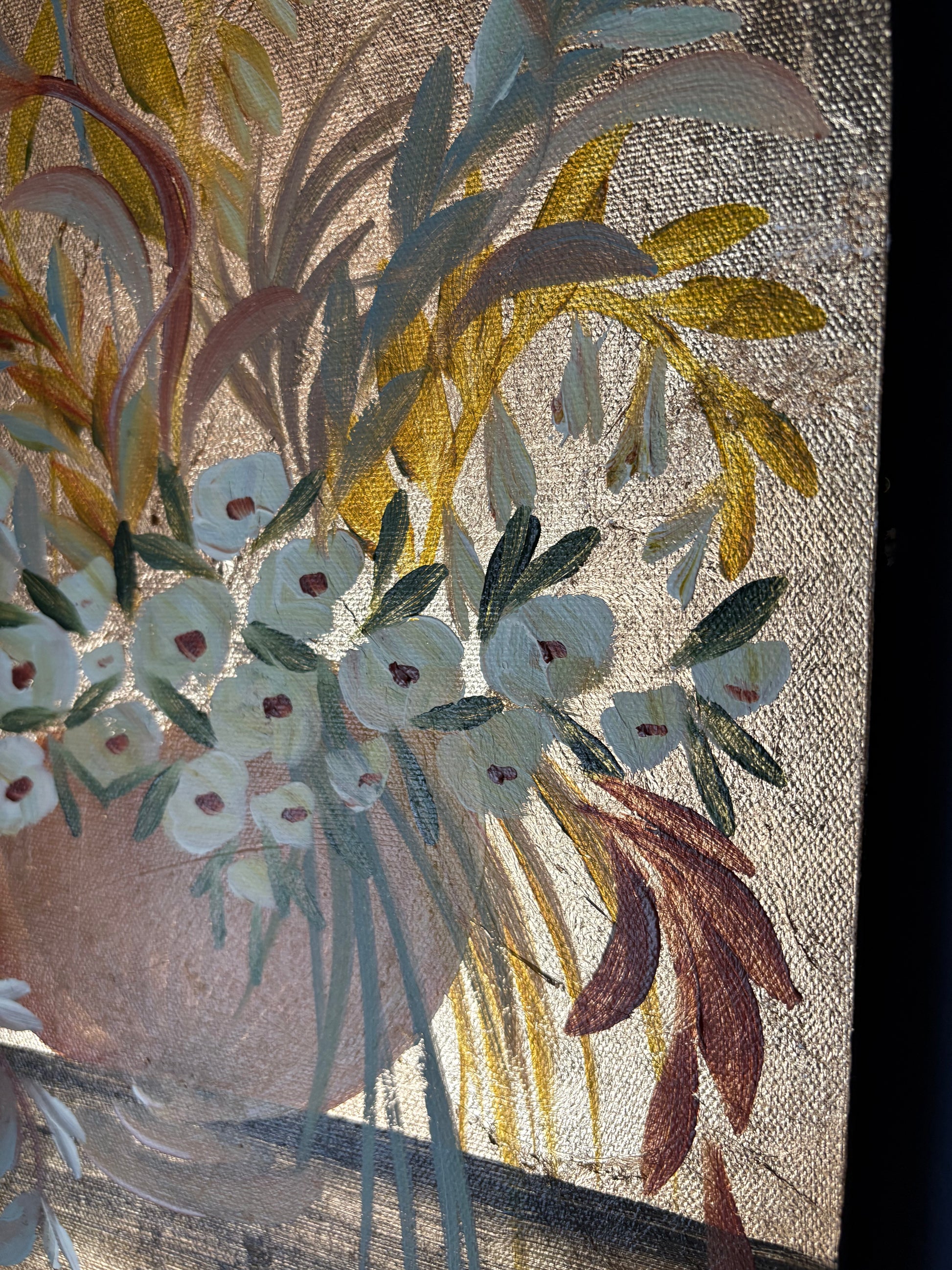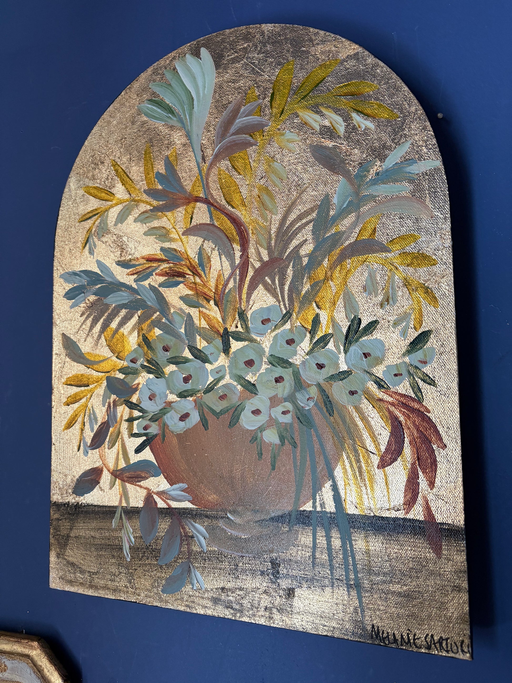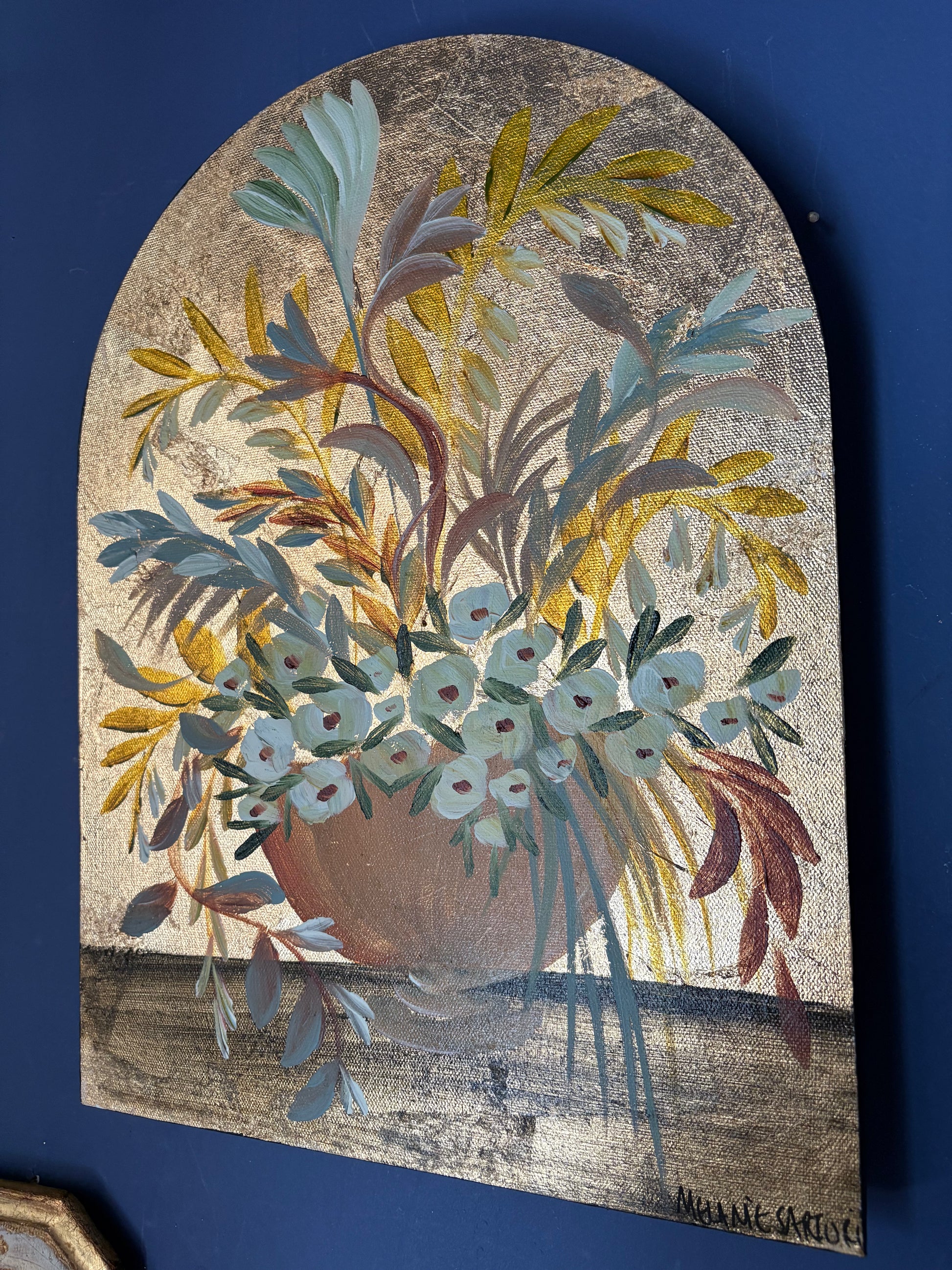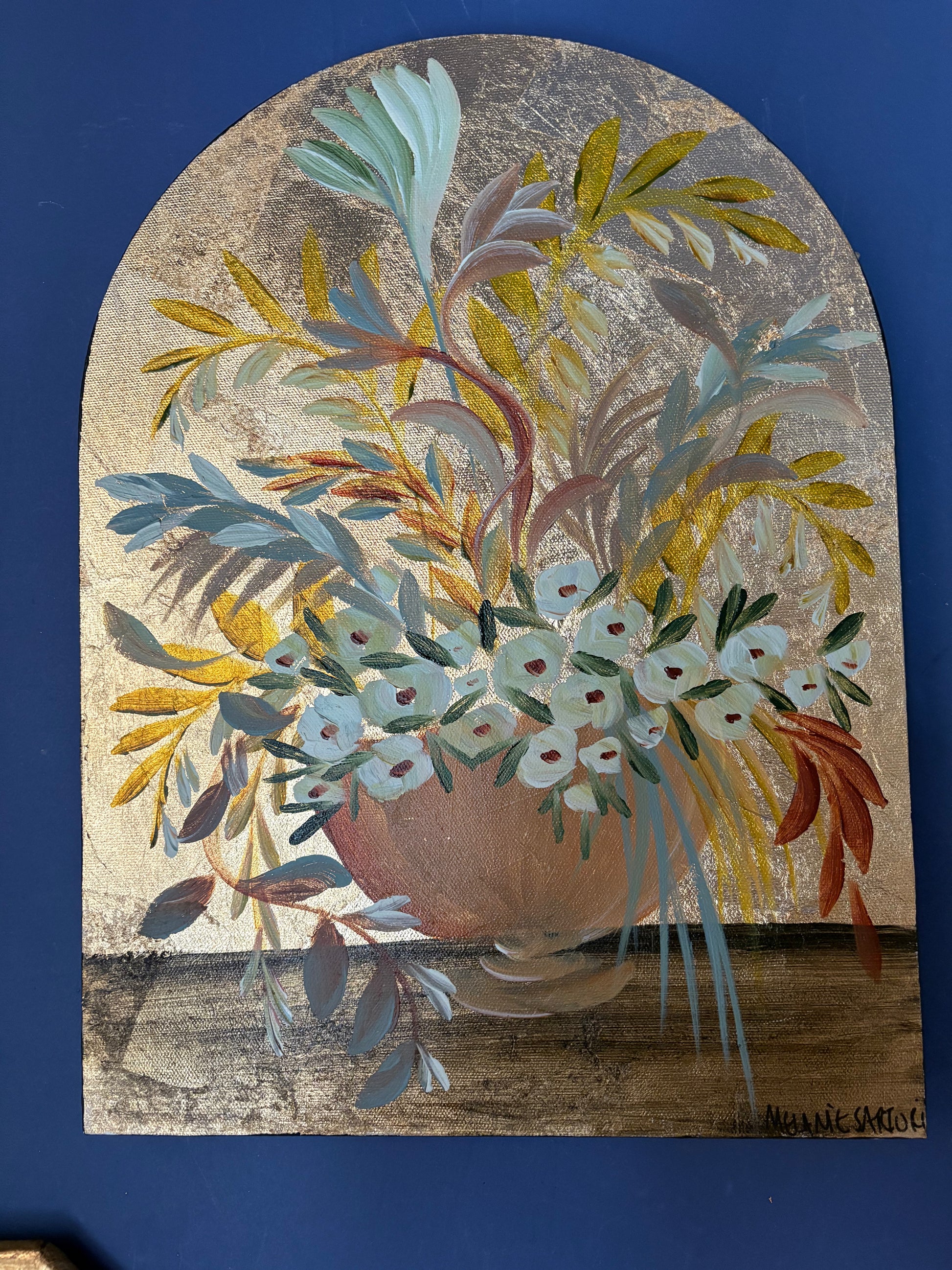 11x14 inch original painting on arch canvas - acrylic, transparent mediums, on gold metal leaf.