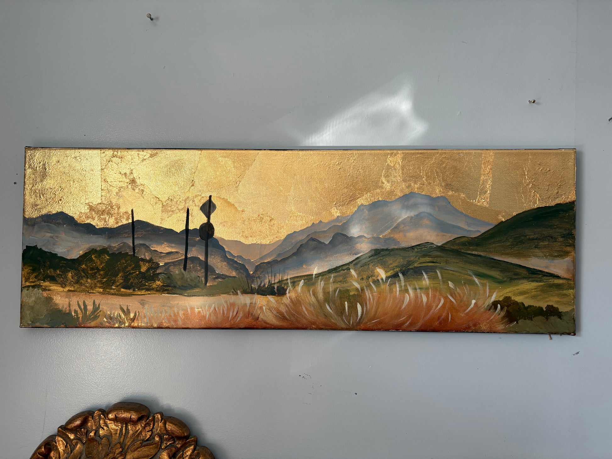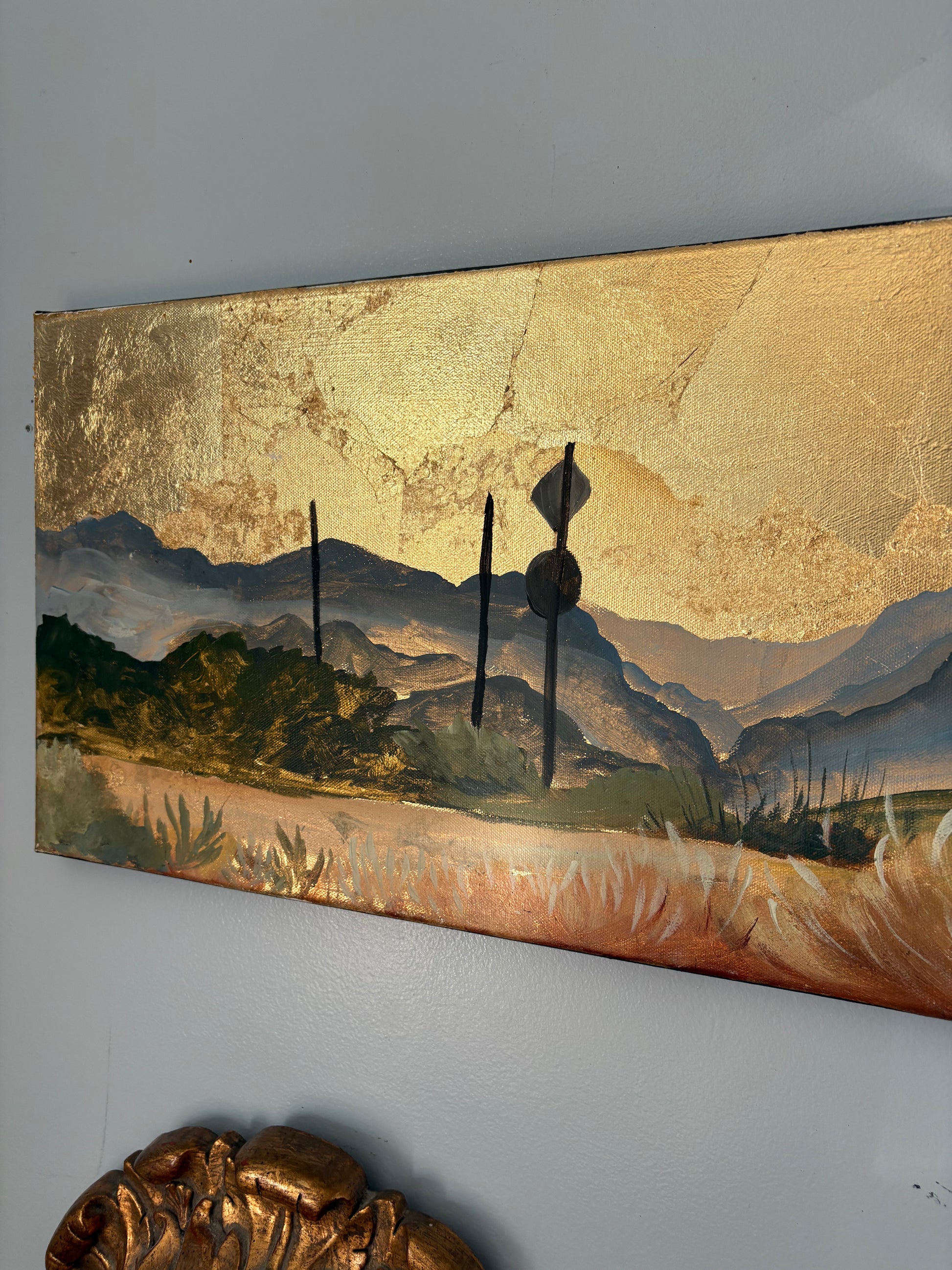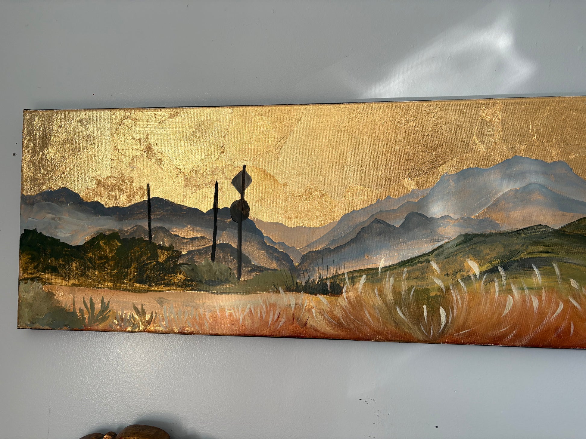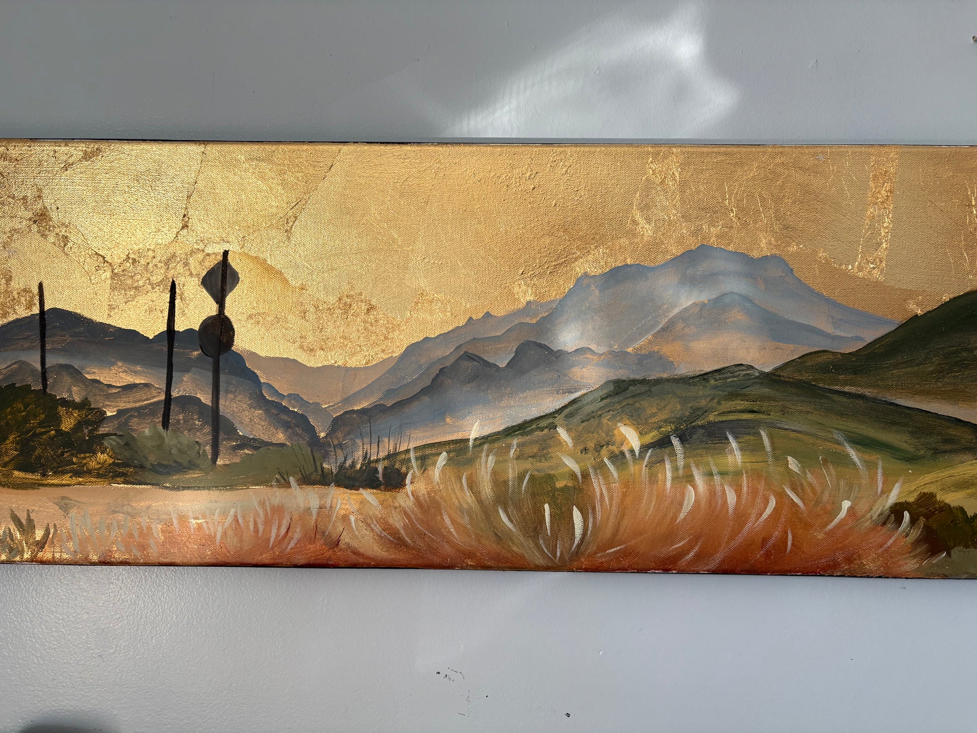 12x36 in. Original acrylic painting on gold metal leaded canvas.