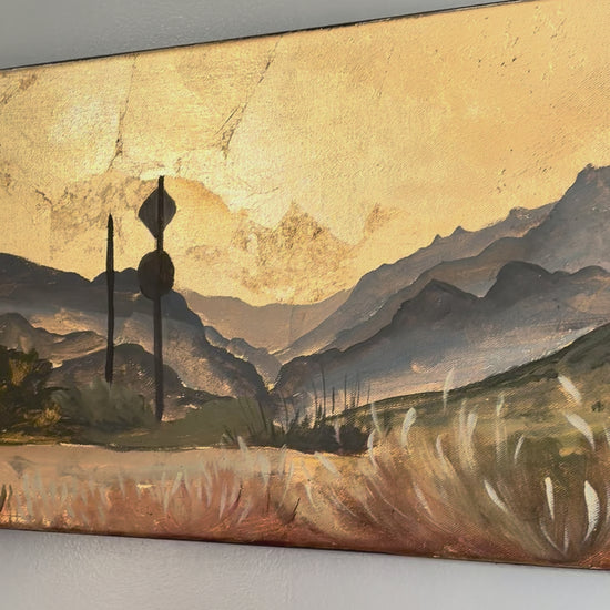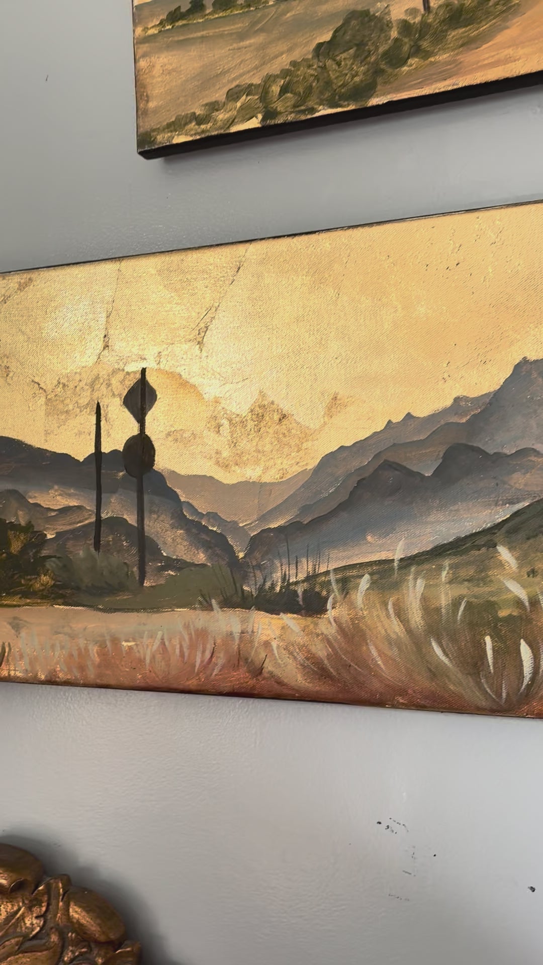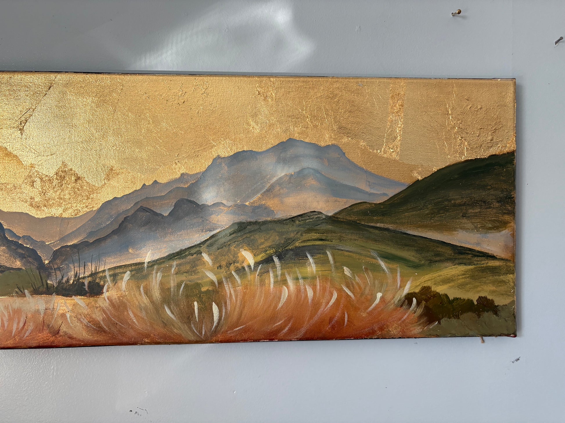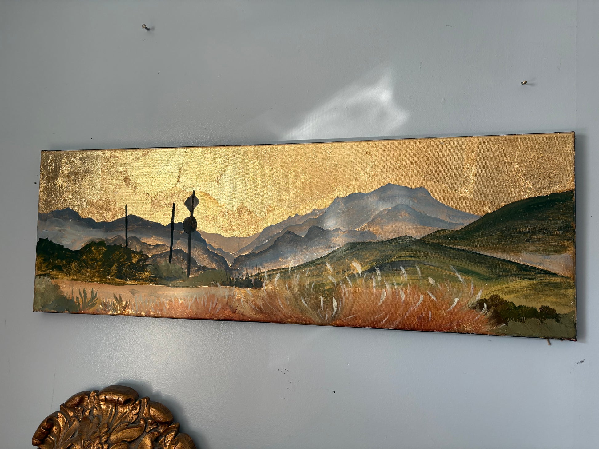 12x36 in. Original acrylic painting on gold metal leaded canvas.