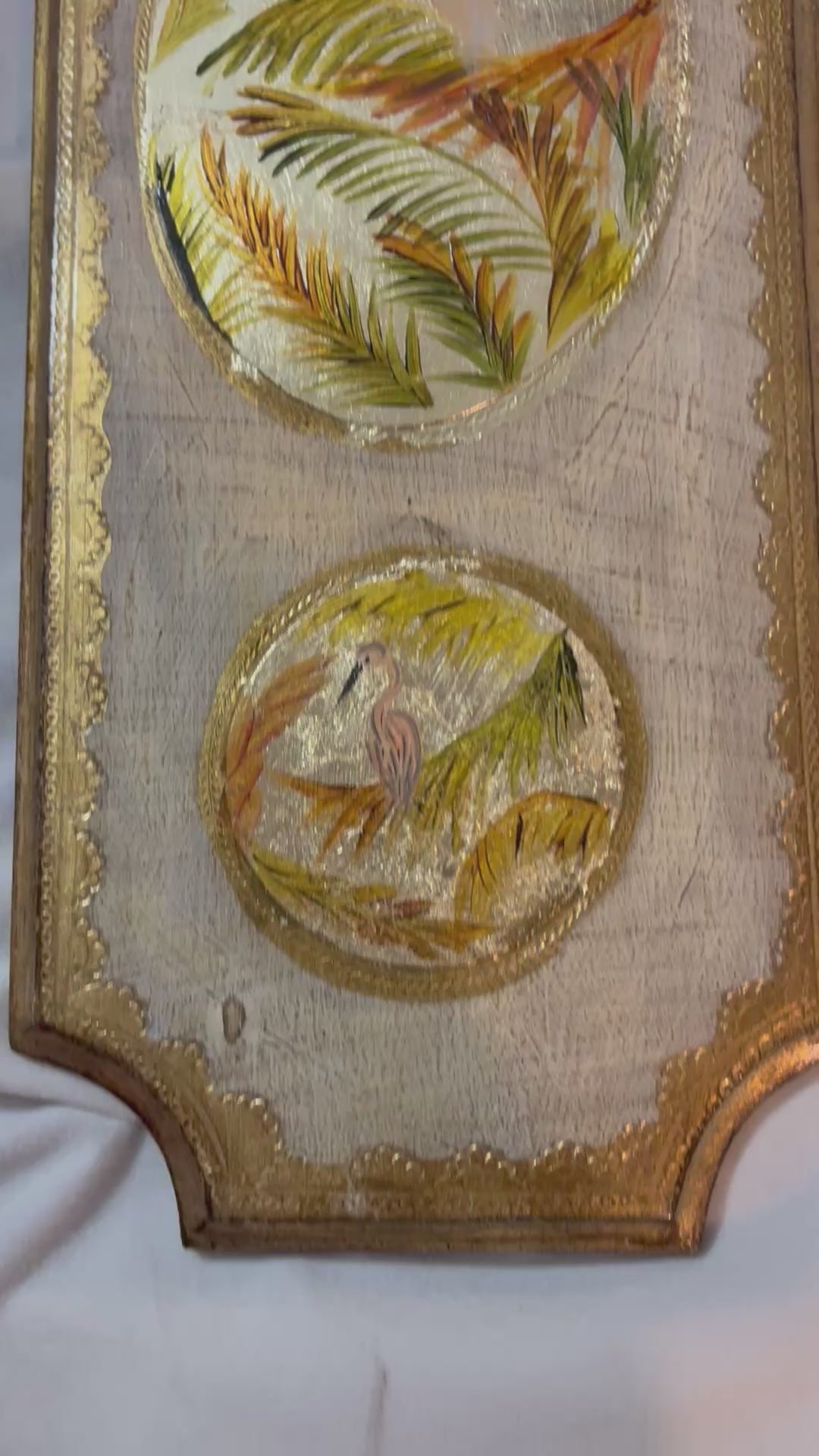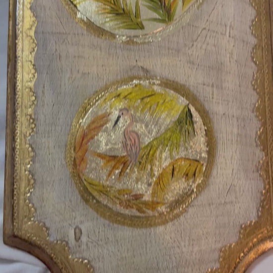 Original miniature paintings in acrylic and gold foil, painted in 1950s Italian Florentine triptych panel.